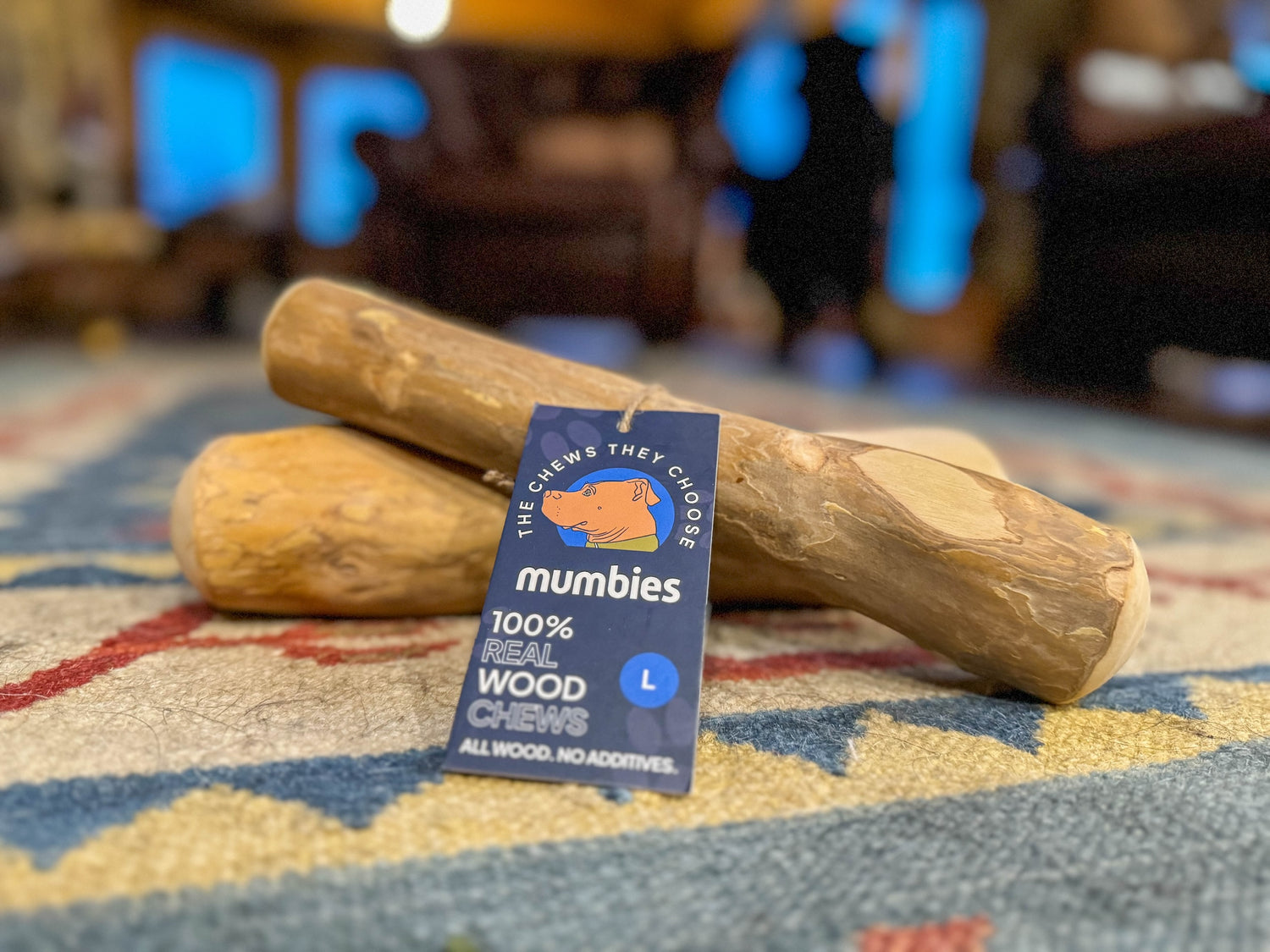 Made from 100% natural coffee tree wood, they're highly resistant to cracking and splintering. Mumbies gradually soften into small fibers as your dog chews, offering a safer alternative to any old stick from the yard or the injection-molded chunk of plastic from a factory.