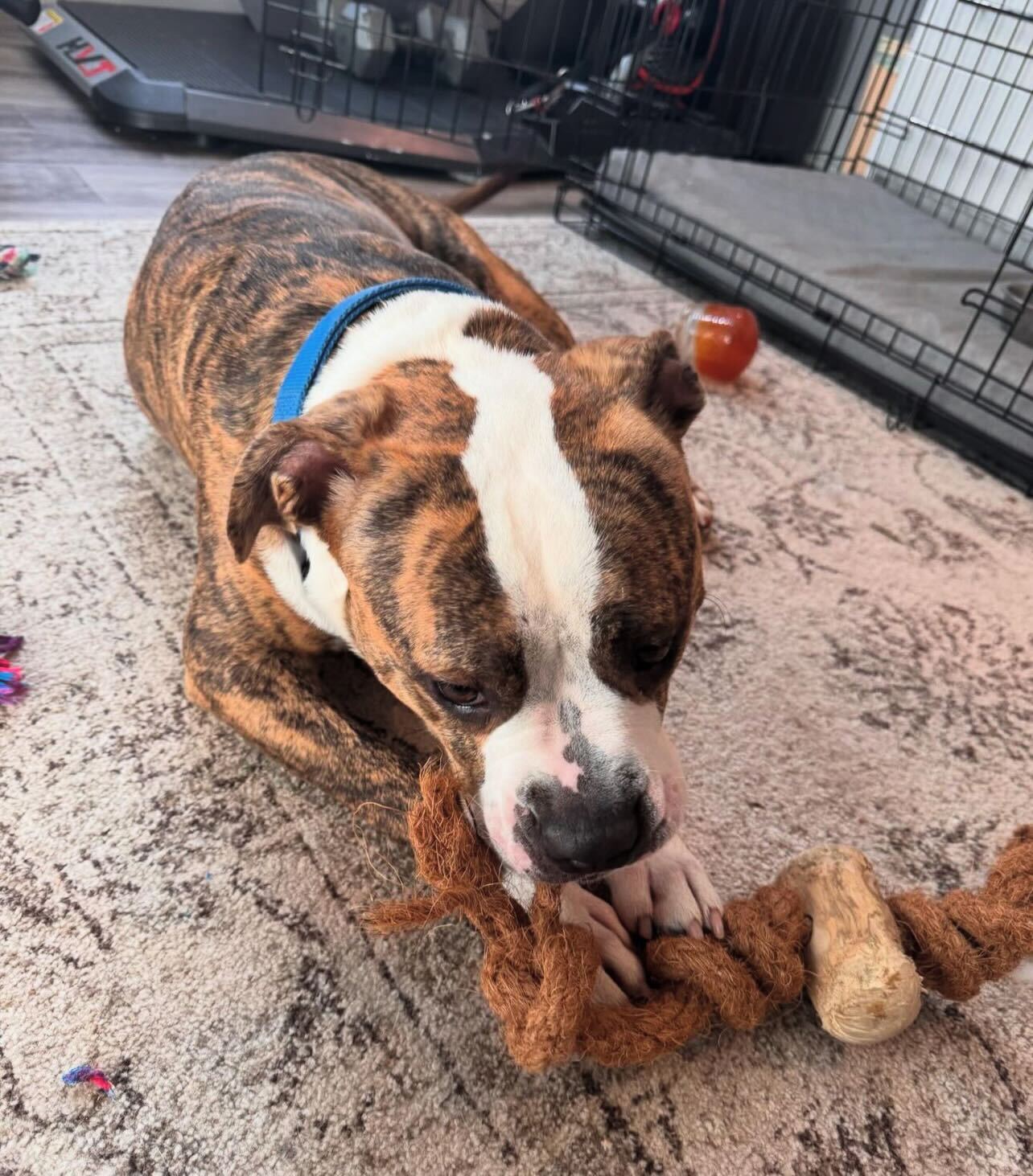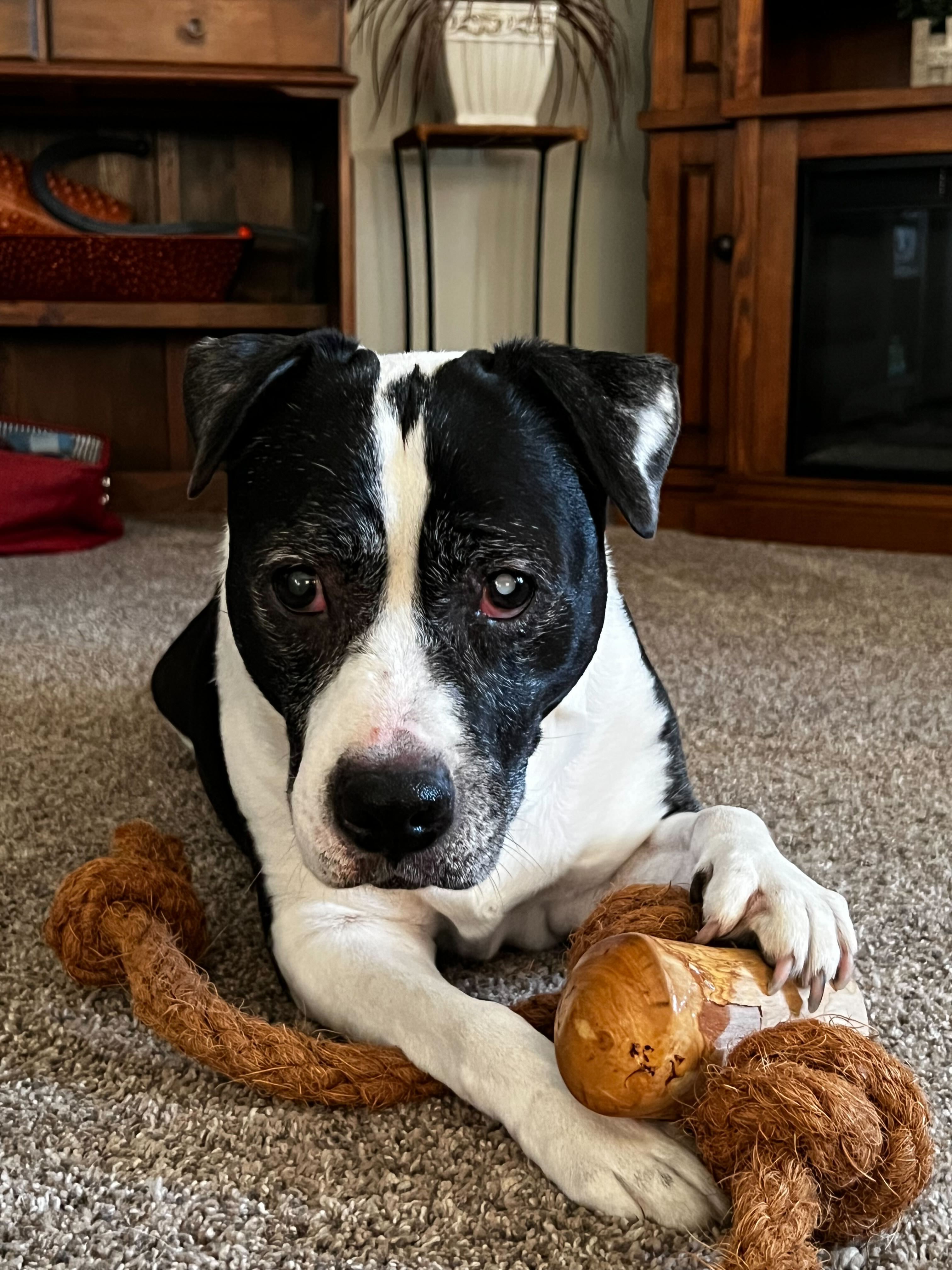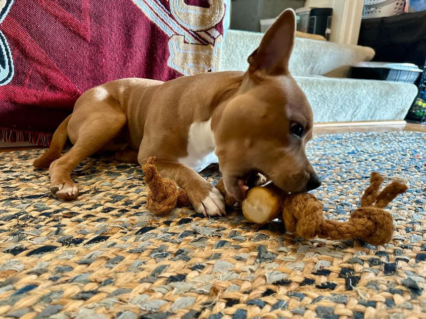 This is a fun and interactive rope toy made from 100% coconut husk fiber, while the wood chew in the center is 100% non-toxic coffee tree – same as our Original Mumbies Chew. This is best for moderate chewers as the rope is soft and the chews will be a little less dense than the Original Chew.